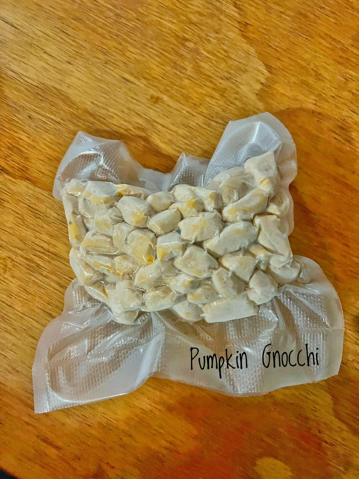 Take your Growbox. Pumpkin Gnocchi out of the freezer cut open and add to salted boiling water